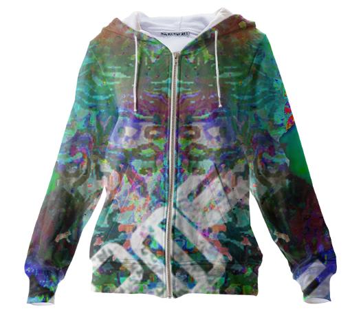 Slim fitting zip up hoodie with front kangaroo pockets metal zipper and drawstring hood.