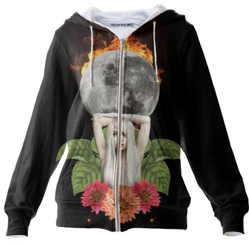 Slim fitting zip up hoodie with front kangaroo pockets metal zipper and drawstring hood.
