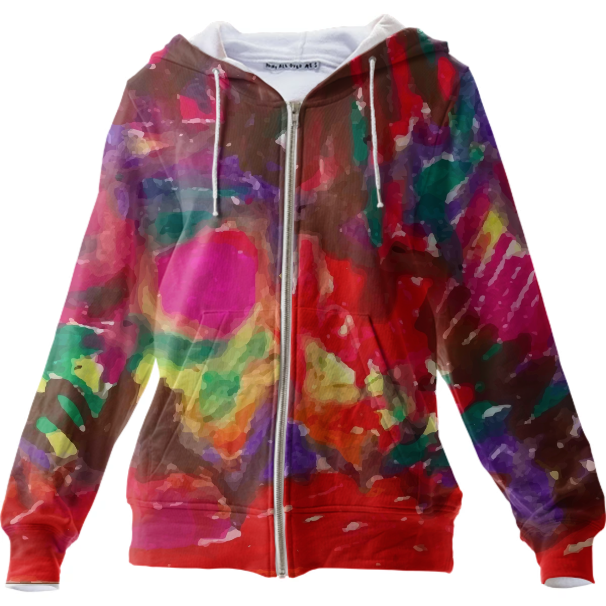 Slim fitting zip up hoodie with front kangaroo pockets metal zipper and drawstring hood.