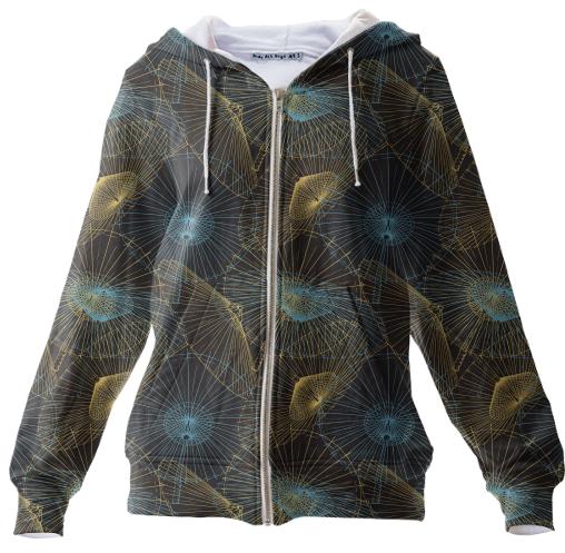Slim fitting zip up hoodie with front kangaroo pockets metal zipper and drawstring hood.