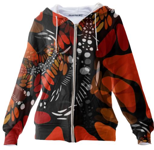 Slim fitting zip up hoodie with front kangaroo pockets metal zipper and drawstring hood.