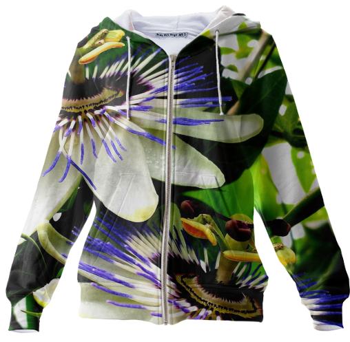 Slim fitting zip up hoodie with front kangaroo pockets metal zipper and drawstring hood.