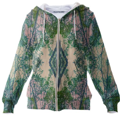 Slim fitting zip up hoodie with front kangaroo pockets metal zipper and drawstring hood.