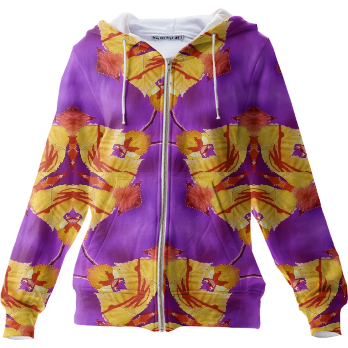 Slim fitting zip up hoodie with front kangaroo pockets metal zipper and drawstring hood.