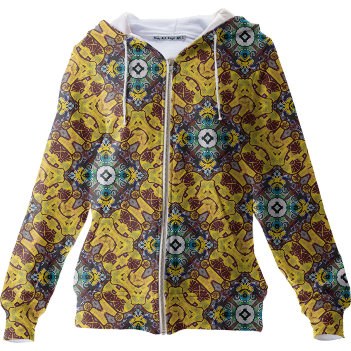 Slim fitting zip up hoodie with front kangaroo pockets metal zipper and drawstring hood.
