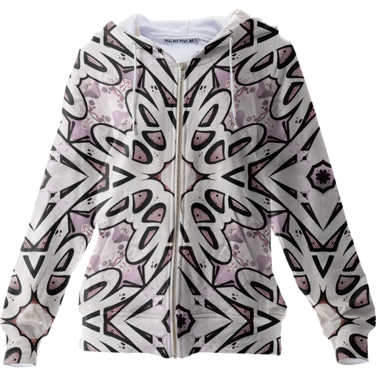 Slim fitting zip up hoodie with front kangaroo pockets metal zipper and drawstring hood.