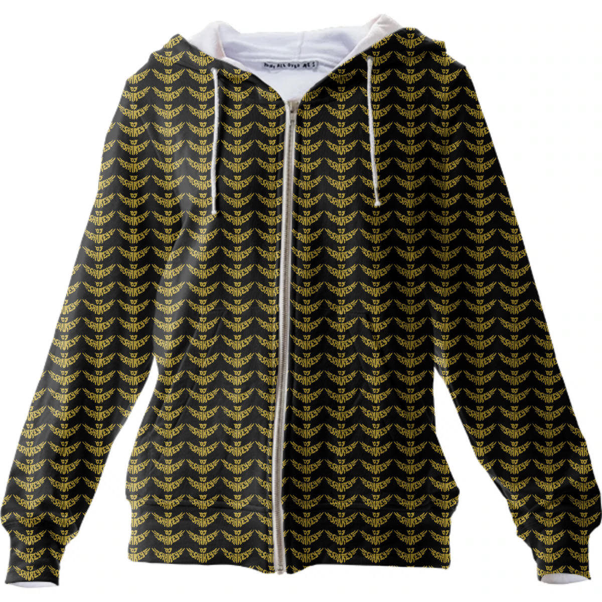 Slim fitting zip up hoodie with front kangaroo pockets metal zipper and drawstring hood.
