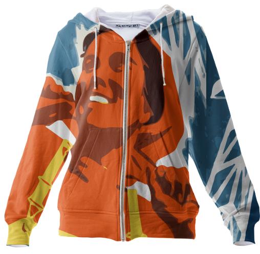 Slim fitting zip up hoodie with front kangaroo pockets metal zipper and drawstring hood.