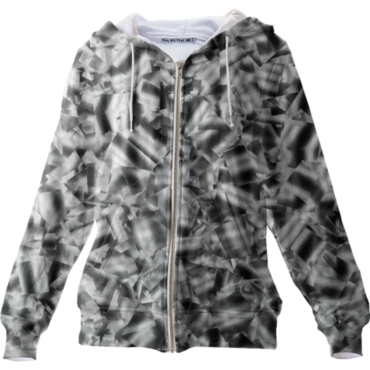 Slim fitting zip up hoodie with front kangaroo pockets metal zipper and drawstring hood.