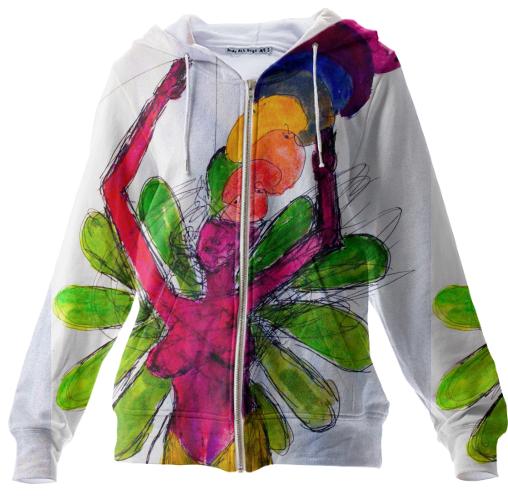 Slim fitting zip up hoodie with front kangaroo pockets metal zipper and drawstring hood.