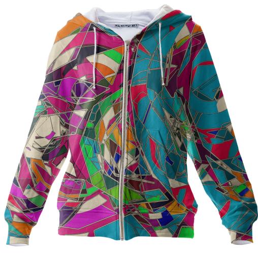 Slim fitting zip up hoodie with front kangaroo pockets metal zipper and drawstring hood.