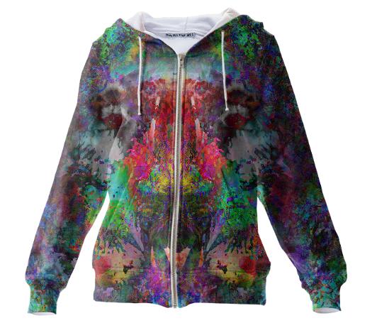 Slim fitting zip up hoodie with front kangaroo pockets metal zipper and drawstring hood.
