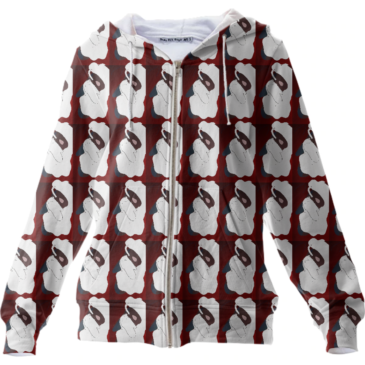 Slim fitting zip up hoodie with front kangaroo pockets metal zipper and drawstring hood.