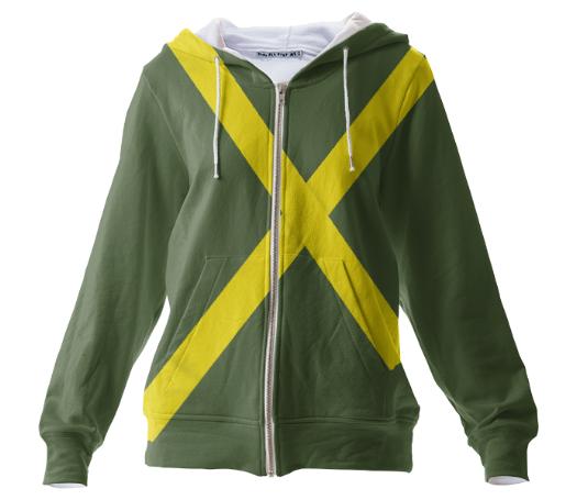 Slim fitting zip up hoodie with front kangaroo pockets metal zipper and drawstring hood.