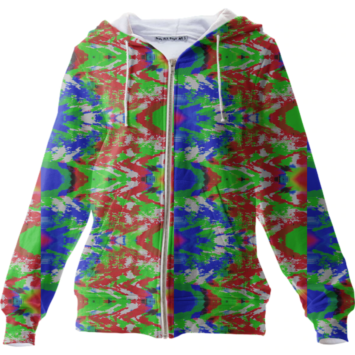 The uploaded file will be printed on the entire front and be mirrored on the back. Because of our cut and sew process some print elements on pockets seams and sleeves might not match up. For best results please upload a PNG or JPG with RGB color profile and dimensions of at least 35 inches width by 20 inches length. DPI can be as low as 72.