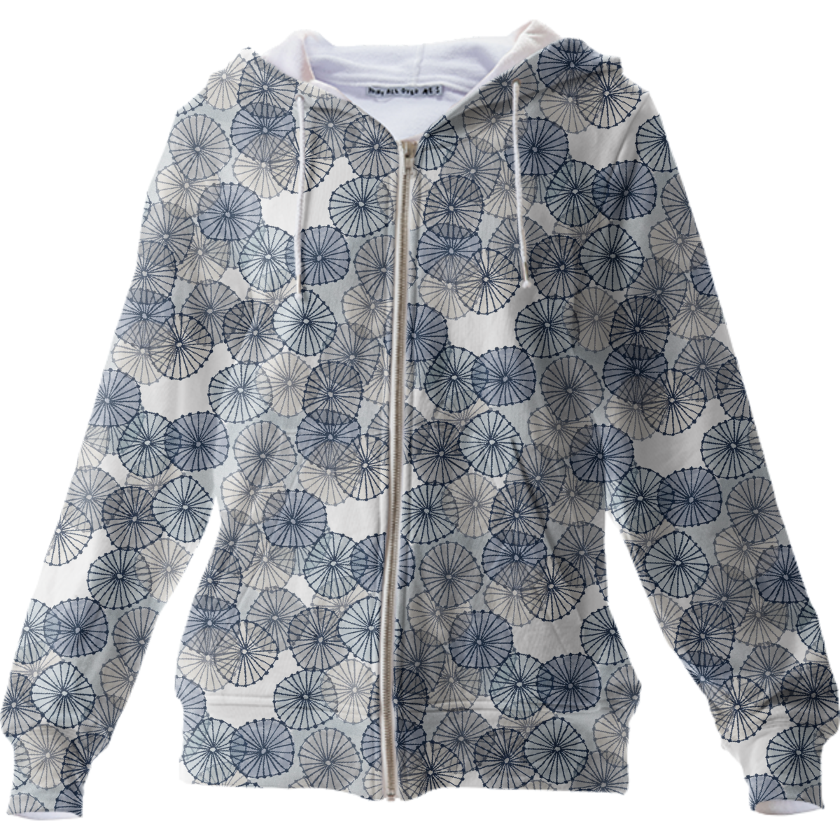 Slim fitting zip up hoodie with front kangaroo pockets metal zipper and drawstring hood.