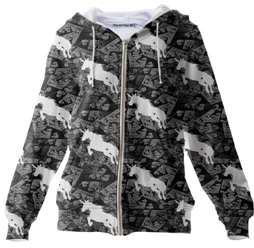 Slim fitting zip up hoodie with front kangaroo pockets metal zipper and drawstring hood.