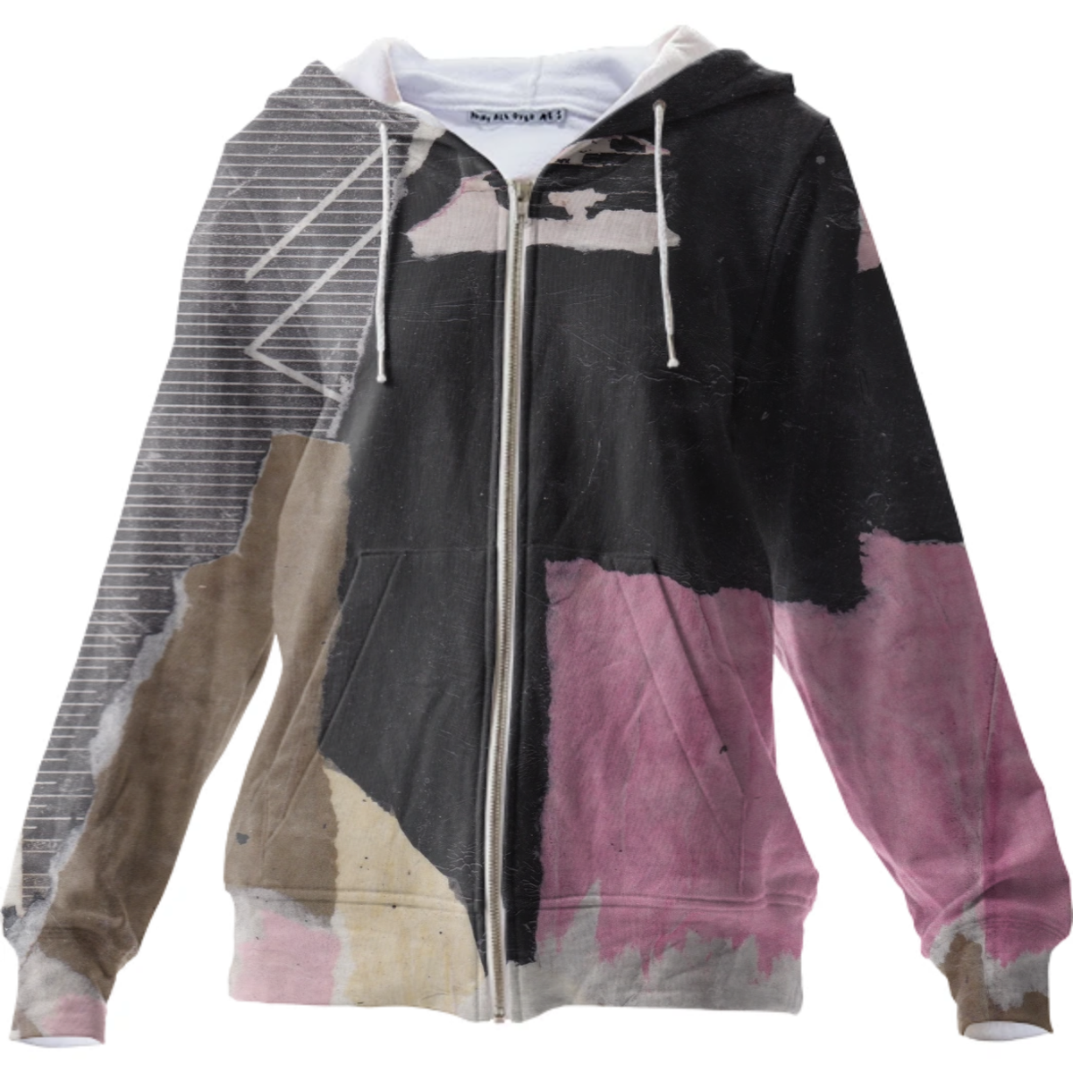 Slim fitting zip up hoodie with front kangaroo pockets metal zipper and drawstring hood.