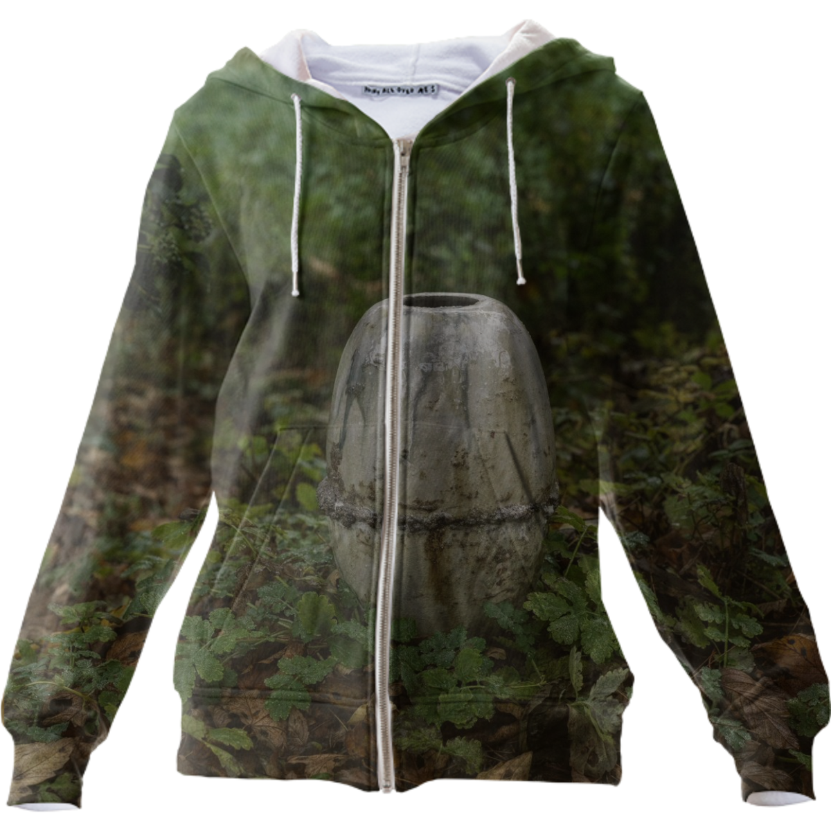 Slim fitting zip up hoodie with front kangaroo pockets metal zipper and drawstring hood.