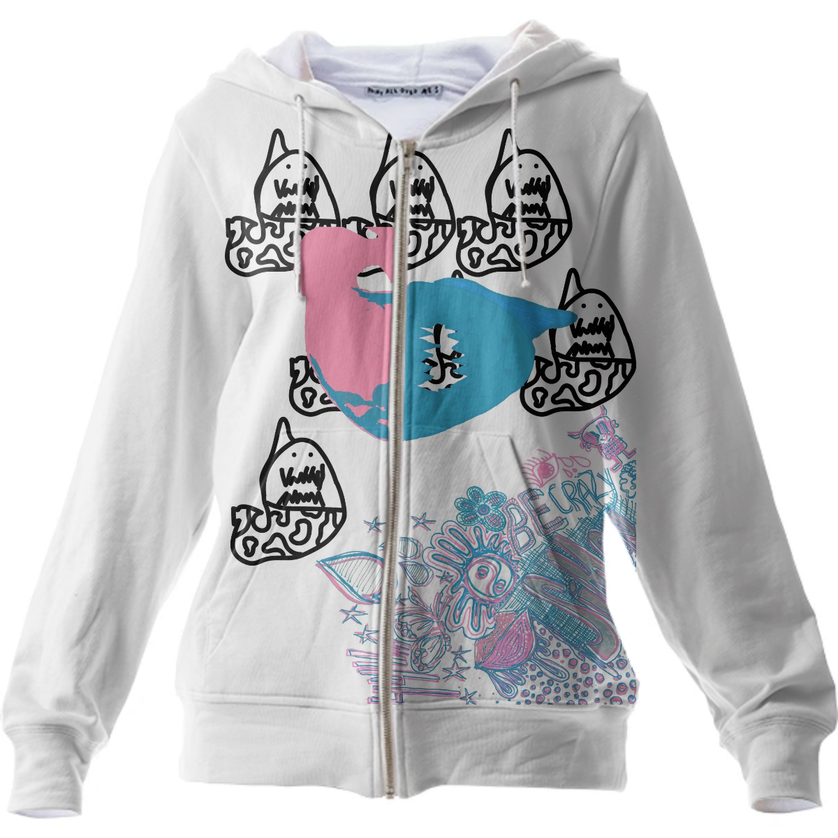 Slim fitting zip up hoodie with front kangaroo pockets metal zipper and drawstring hood.