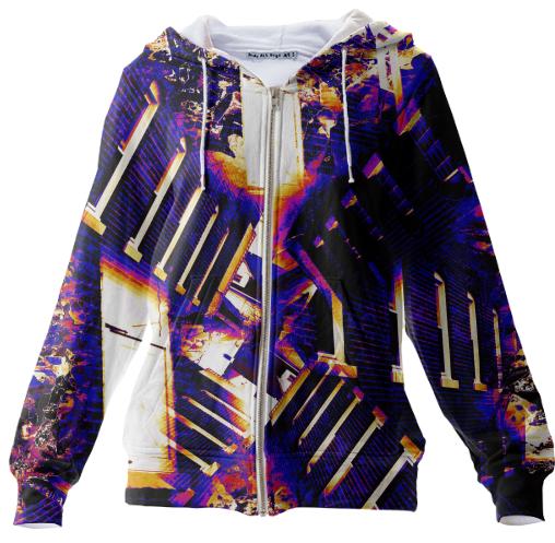 Slim fitting zip up hoodie with front kangaroo pockets metal zipper and drawstring hood.