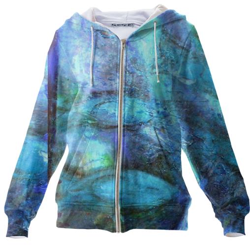 Slim fitting zip up hoodie with front kangaroo pockets metal zipper and drawstring hood.