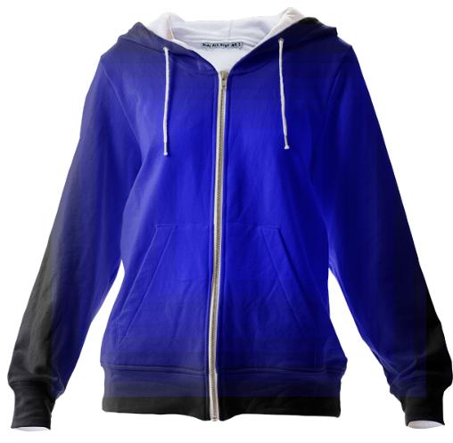 Slim fitting zip up hoodie with front kangaroo pockets metal zipper and drawstring hood.
