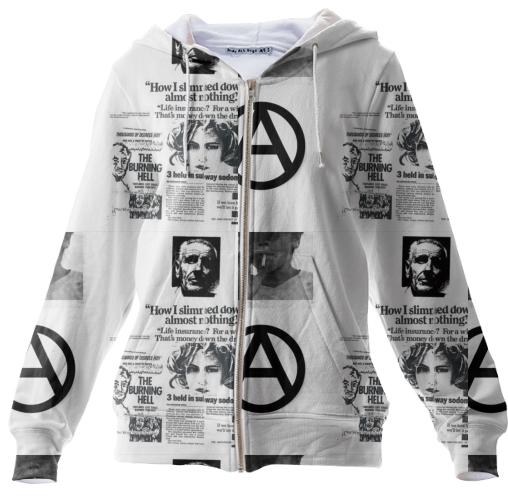 Slim fitting zip up hoodie with front kangaroo pockets metal zipper and drawstring hood.
