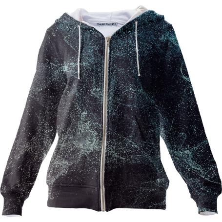 Slim fitting zip up hoodie with front kangaroo pockets metal zipper and drawstring hood.
