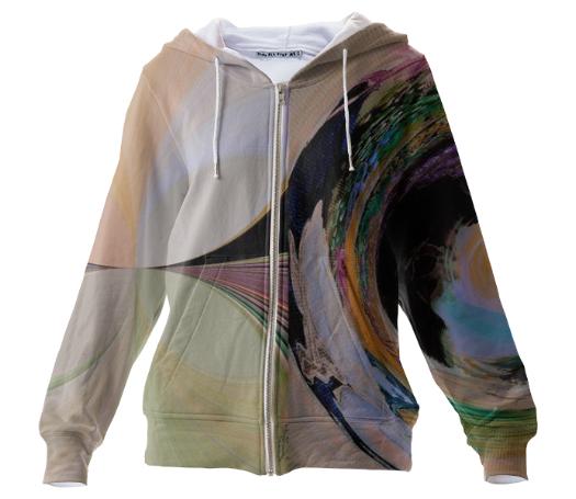 Slim fitting zip up hoodie with front kangaroo pockets metal zipper and drawstring hood.