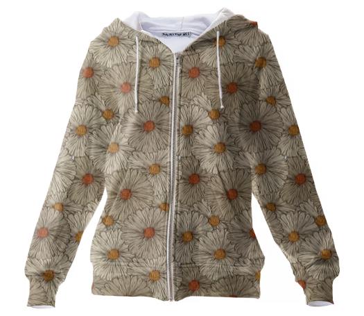 Slim fitting zip up hoodie with front kangaroo pockets metal zipper and drawstring hood.