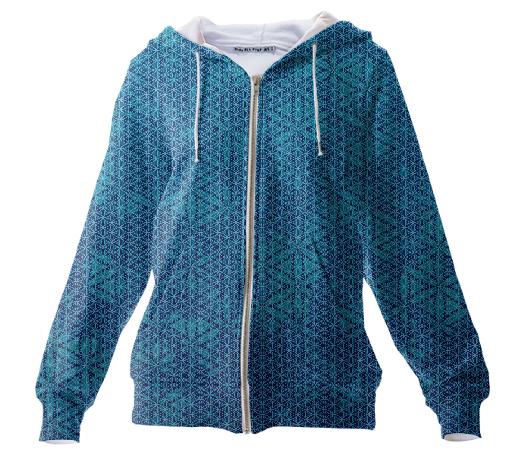 Slim fitting zip up hoodie with front kangaroo pockets metal zipper and drawstring hood.