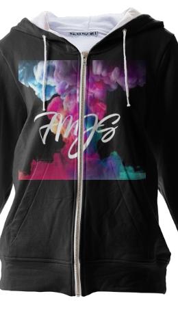 Slim fitting zip up hoodie with front kangaroo pockets metal zipper and drawstring hood.