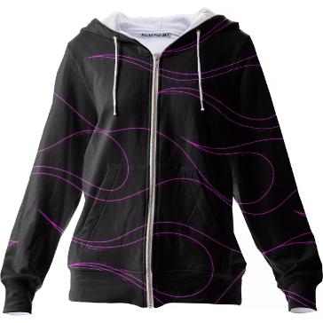 Slim fitting zip up hoodie with front kangaroo pockets metal zipper and drawstring hood.