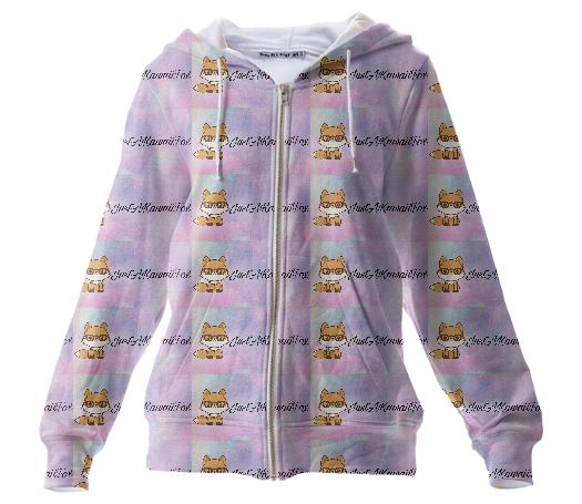 Slim fitting zip up hoodie with front kangaroo pockets metal zipper and drawstring hood.