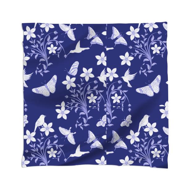36 by 36 inch square scarf made with light rayon for a nice drape.